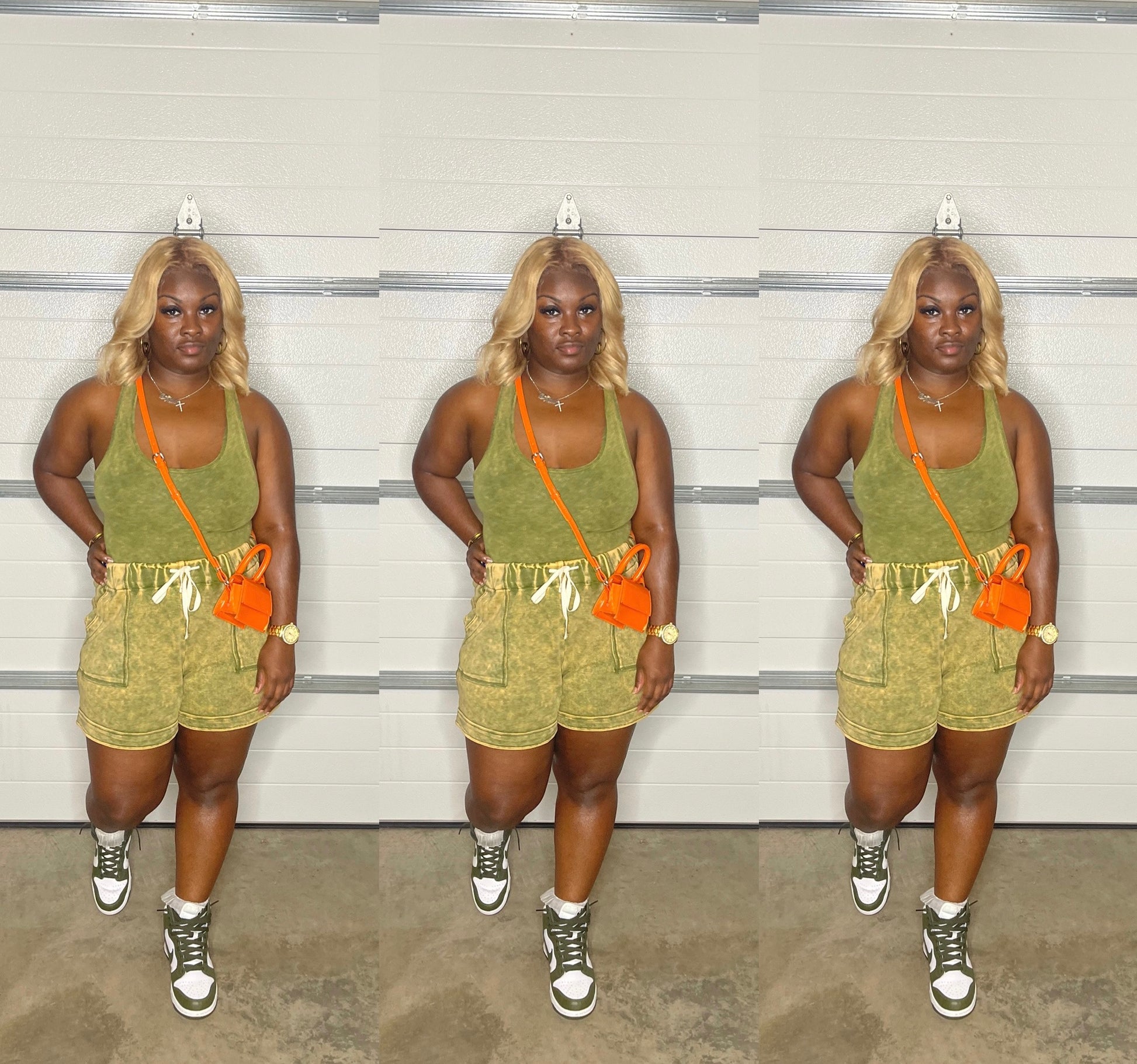 Acid Wash Set. Top bodysuit with acid wash short bottoms. Has stretch