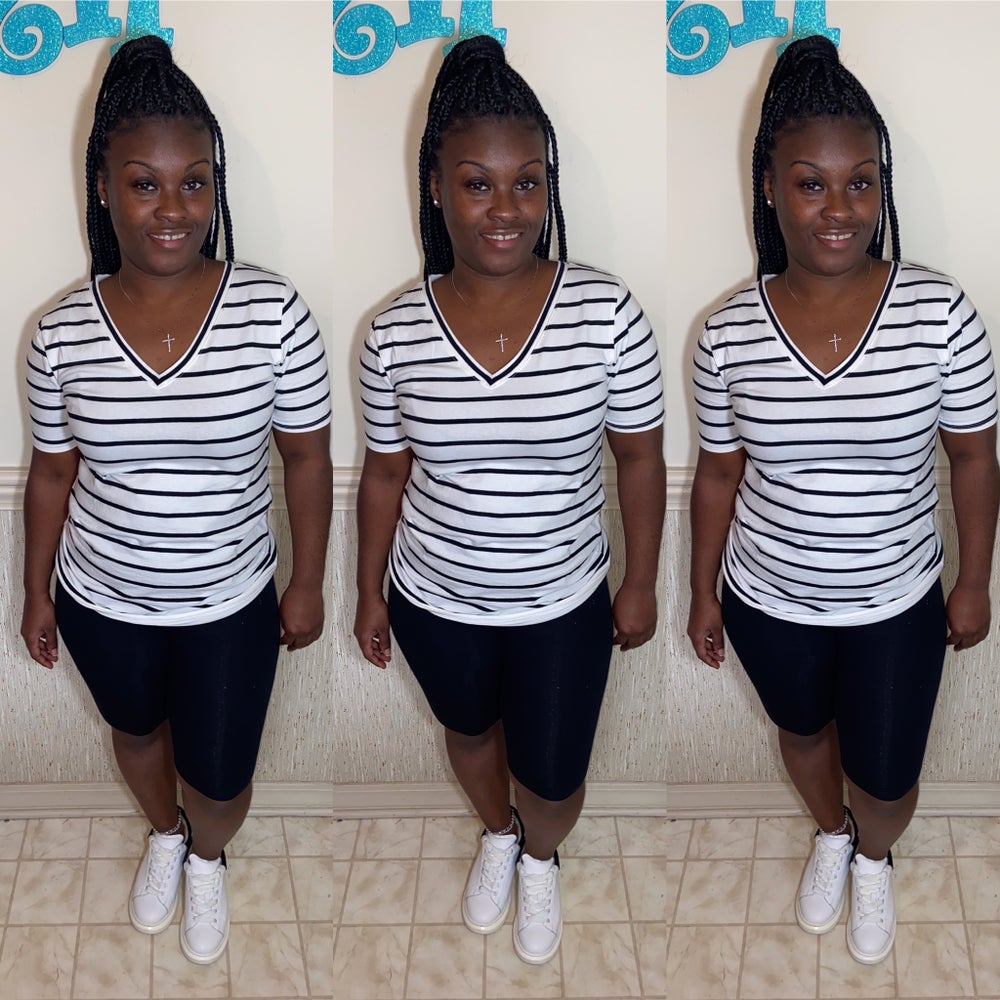 Top: Stripe cotton V-Neck T-Shirt