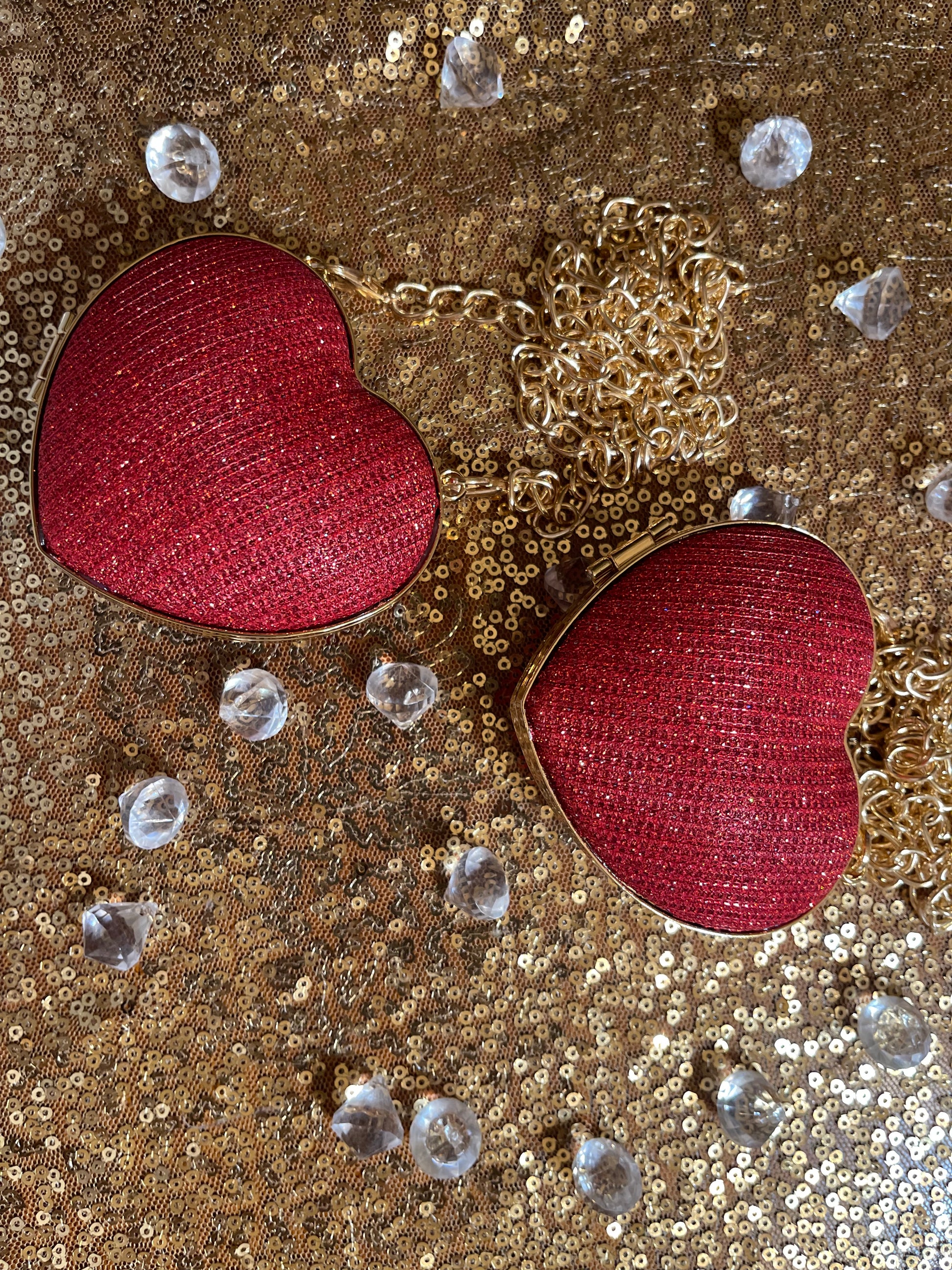 Mini crossbody heart purse with gold chain. Perfect addition to spice up your outfit!