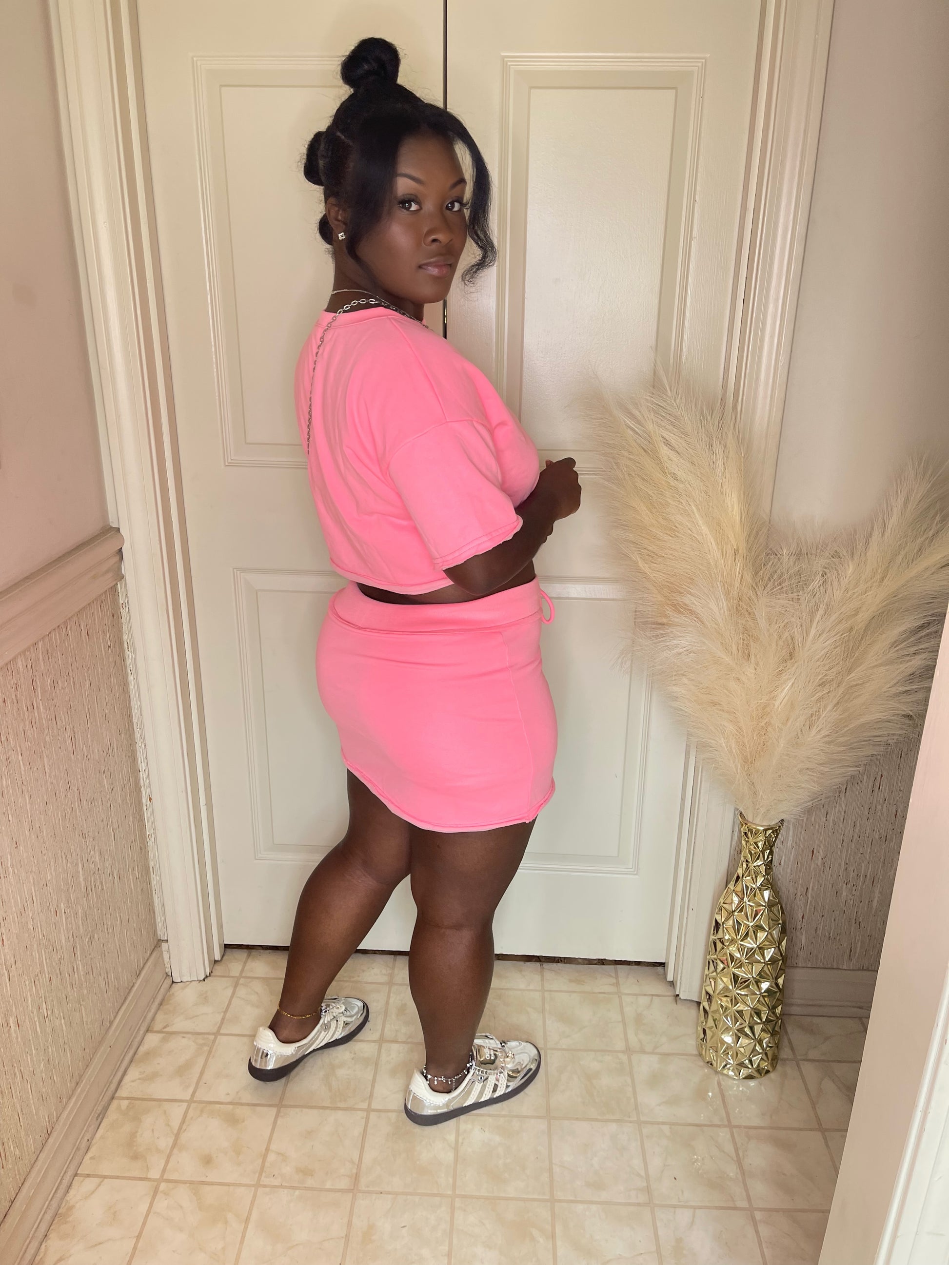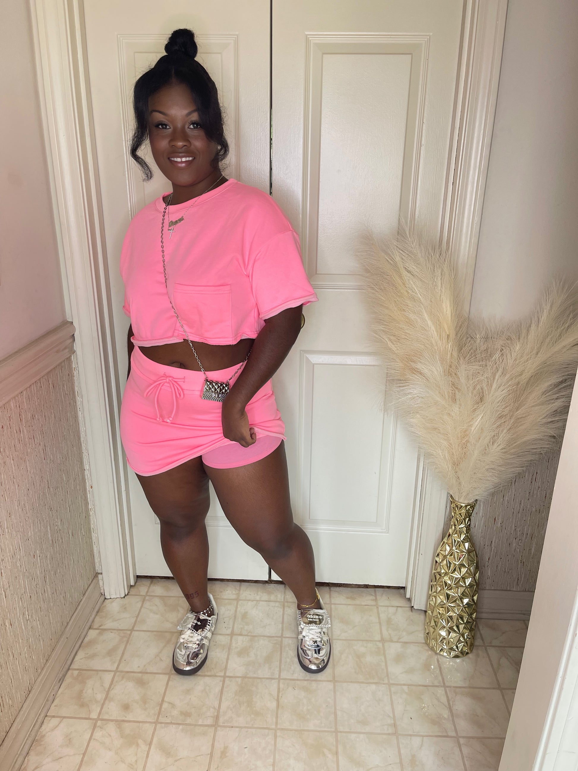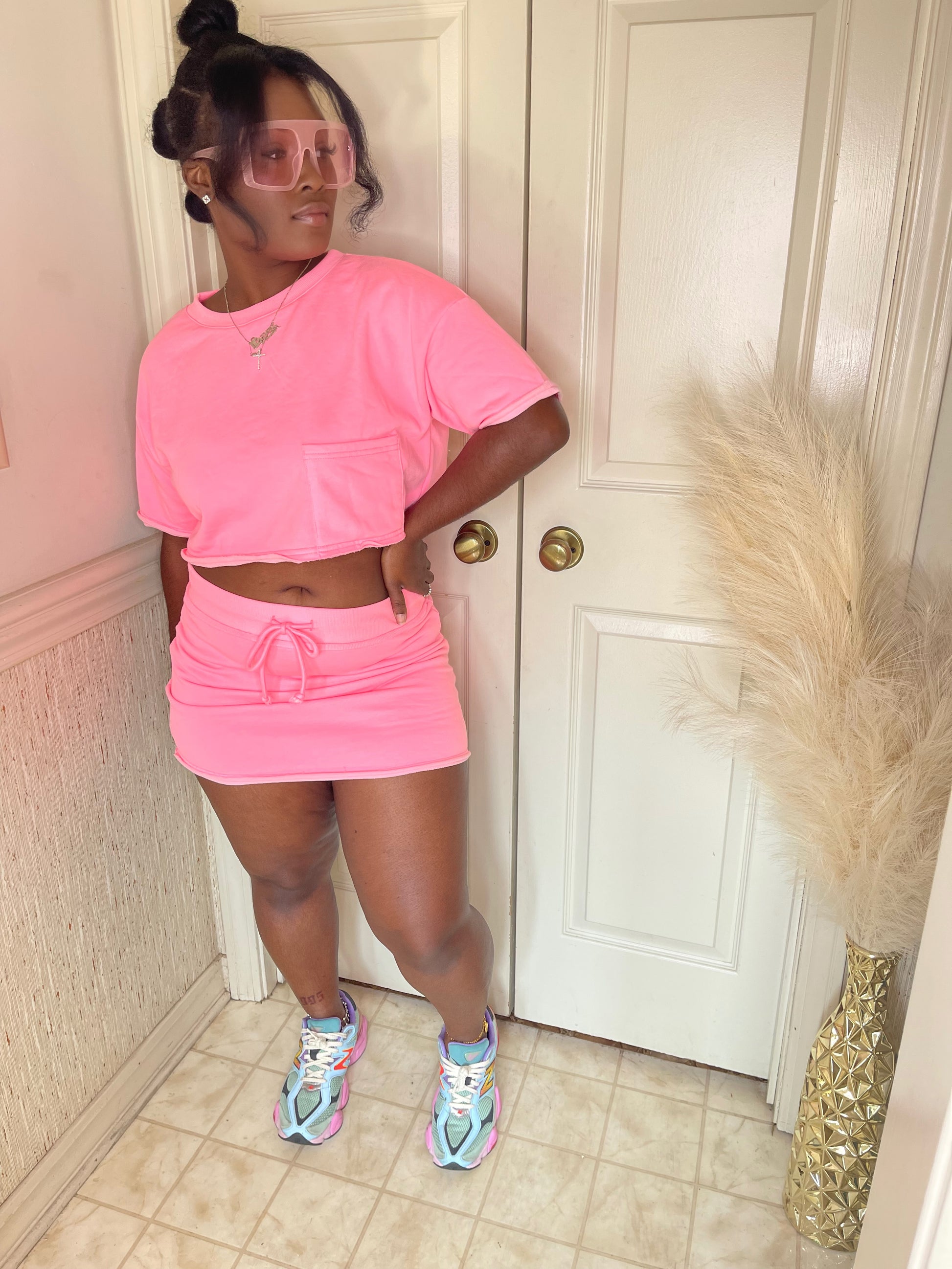 Elevate your style with this two-piece skort set! Featuring a crop top with a mini pocket and a skirt with built-in shorts, this outfit combines fashion and functionality. This set will keep you comfortable and chic all day long. Don't miss out on this must-have Essential piece!