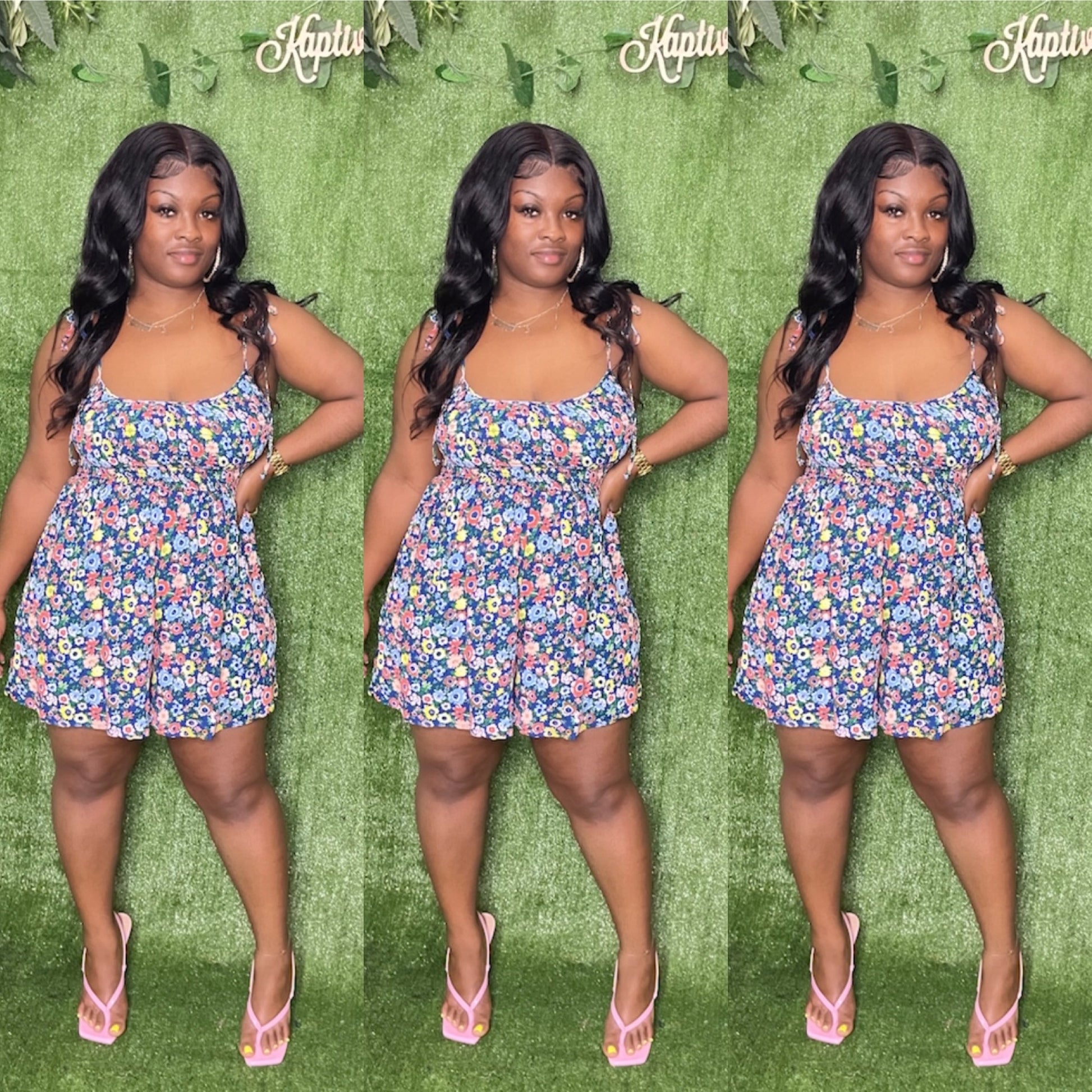 Who Doesn't Love Rompers? Grab this floral, flowy, flunting one piece with tie up spaghetti straps.