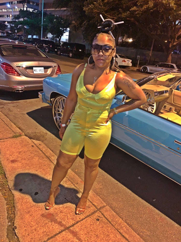 High Shine Bermuda Shorts paired with our limeRita/RoseRita Bodysuit