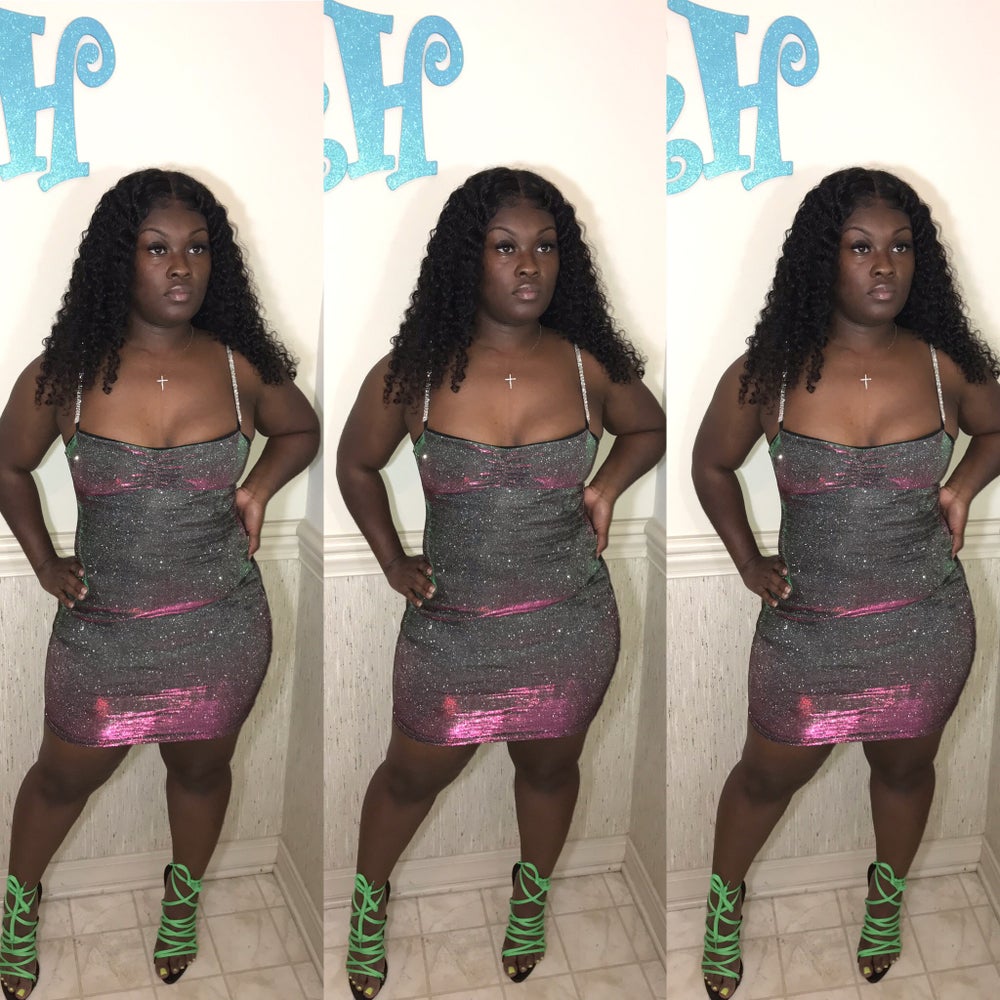 Metallic shimmer Dress with diamond adjustable spaghetti straps. Zips in back. Has stretch.