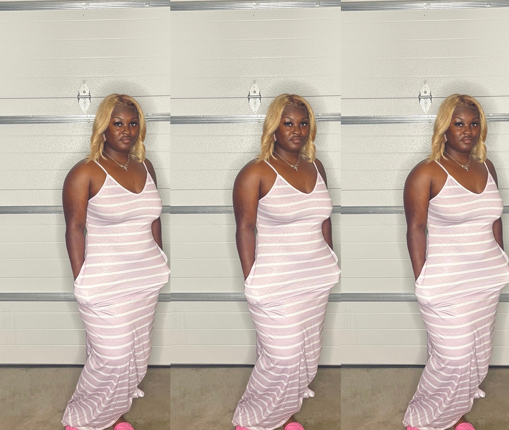 Spaghetti strap sundress, with pockets on sides. polyester/cotton mixture material