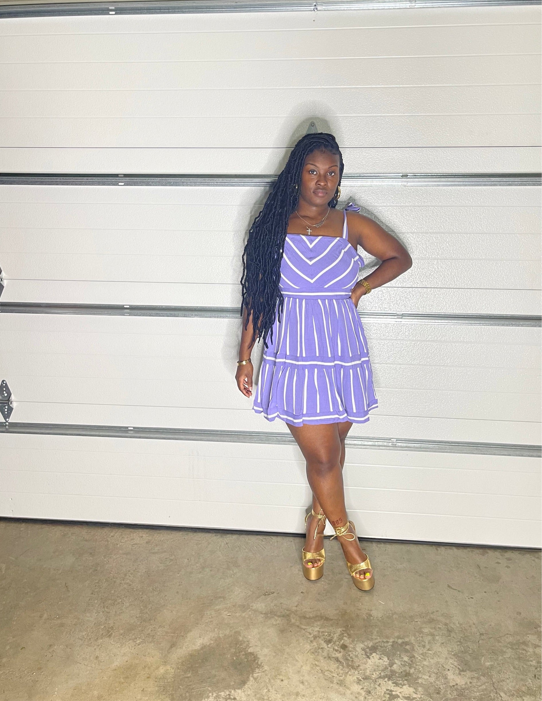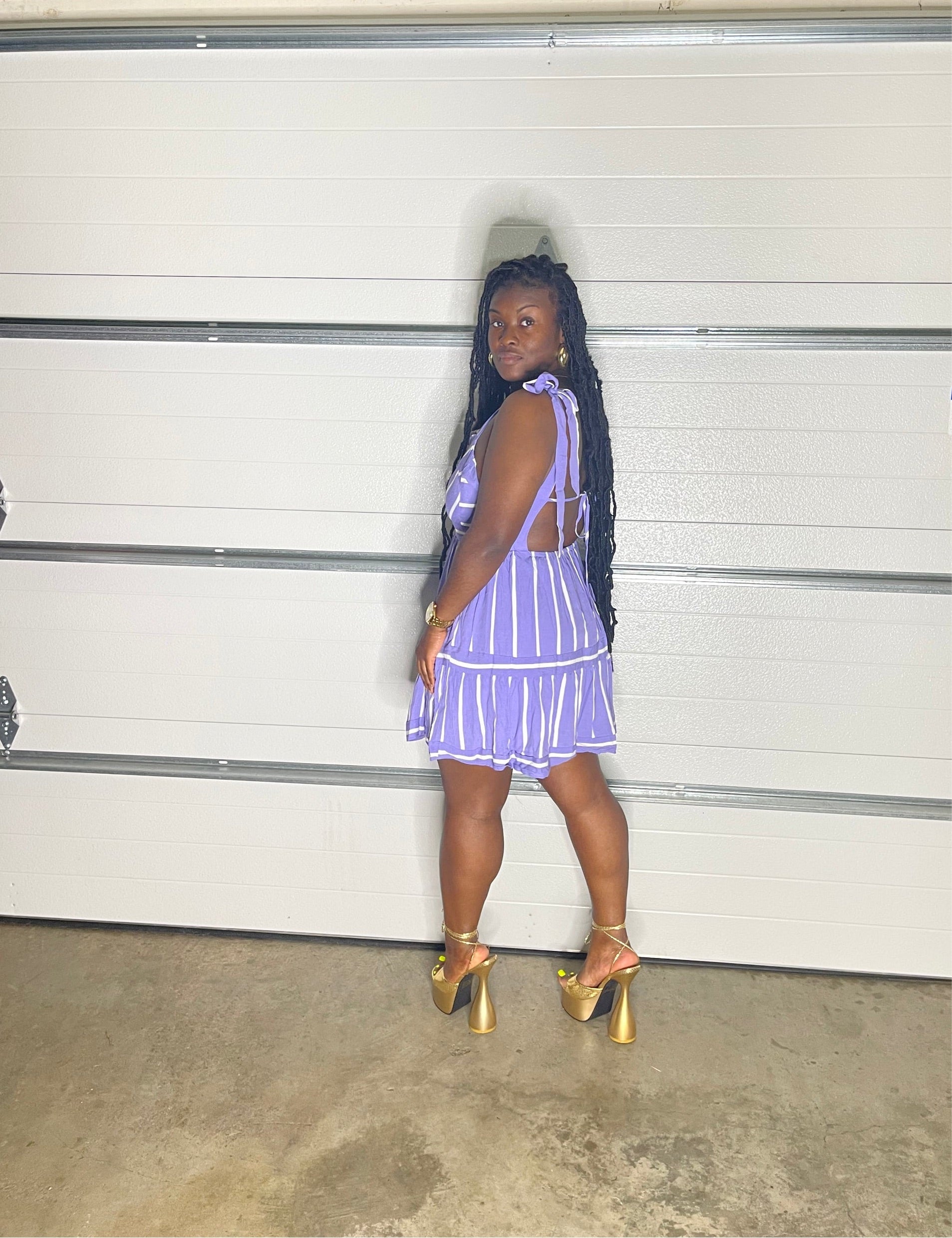 Baby Doll Dress. Adjustable tie shoulders, open back.