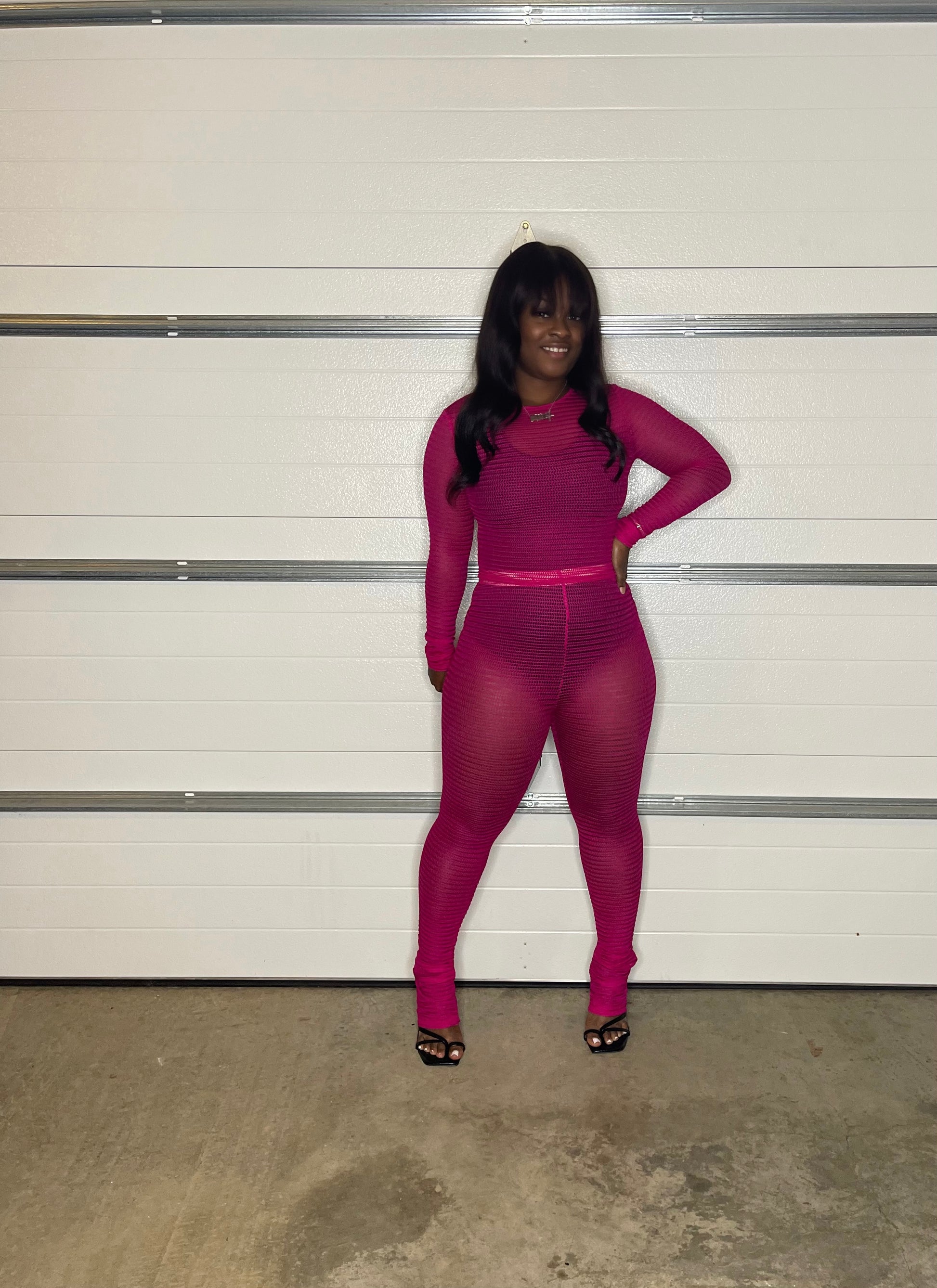 Two-piece knit set. Matching top and bottoms. Bottoms are stack flare. Minimum stretch