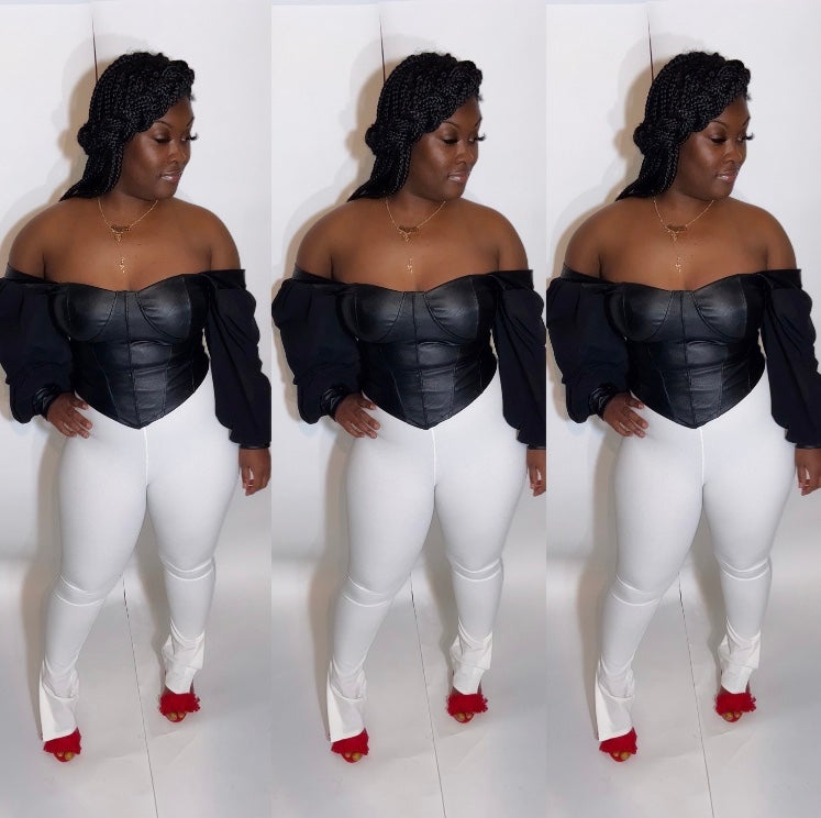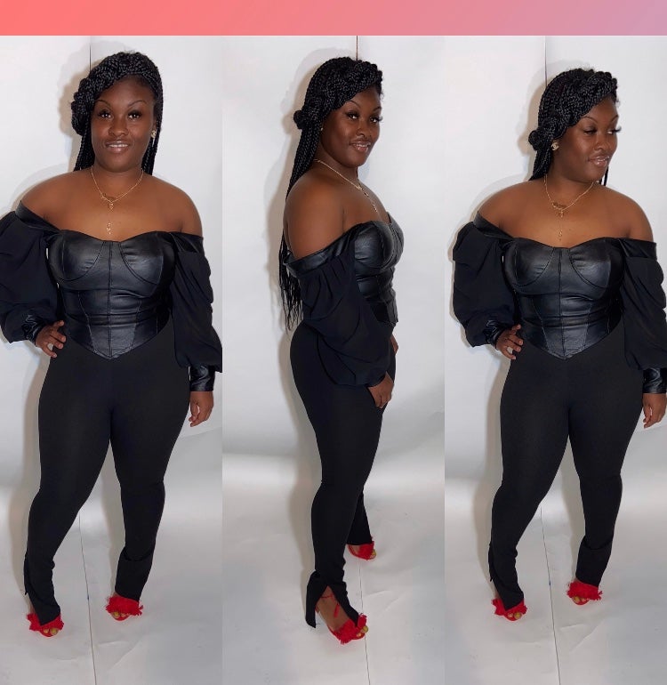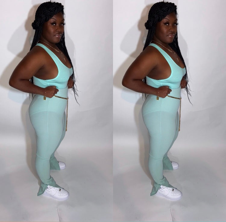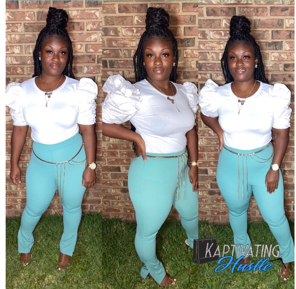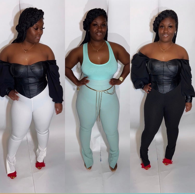 High waist side split bottoms. Elastic band around waist for a good stretch fit