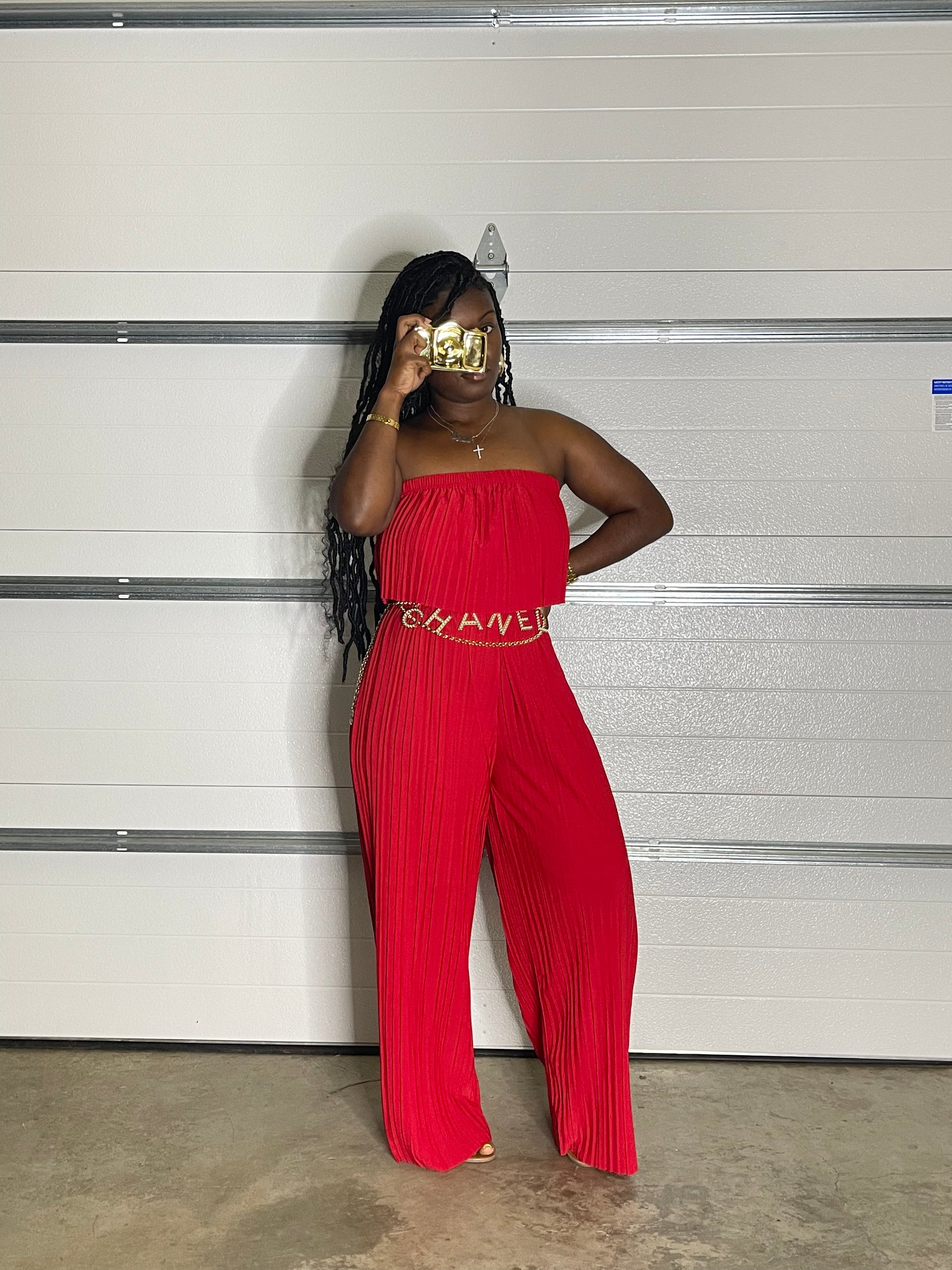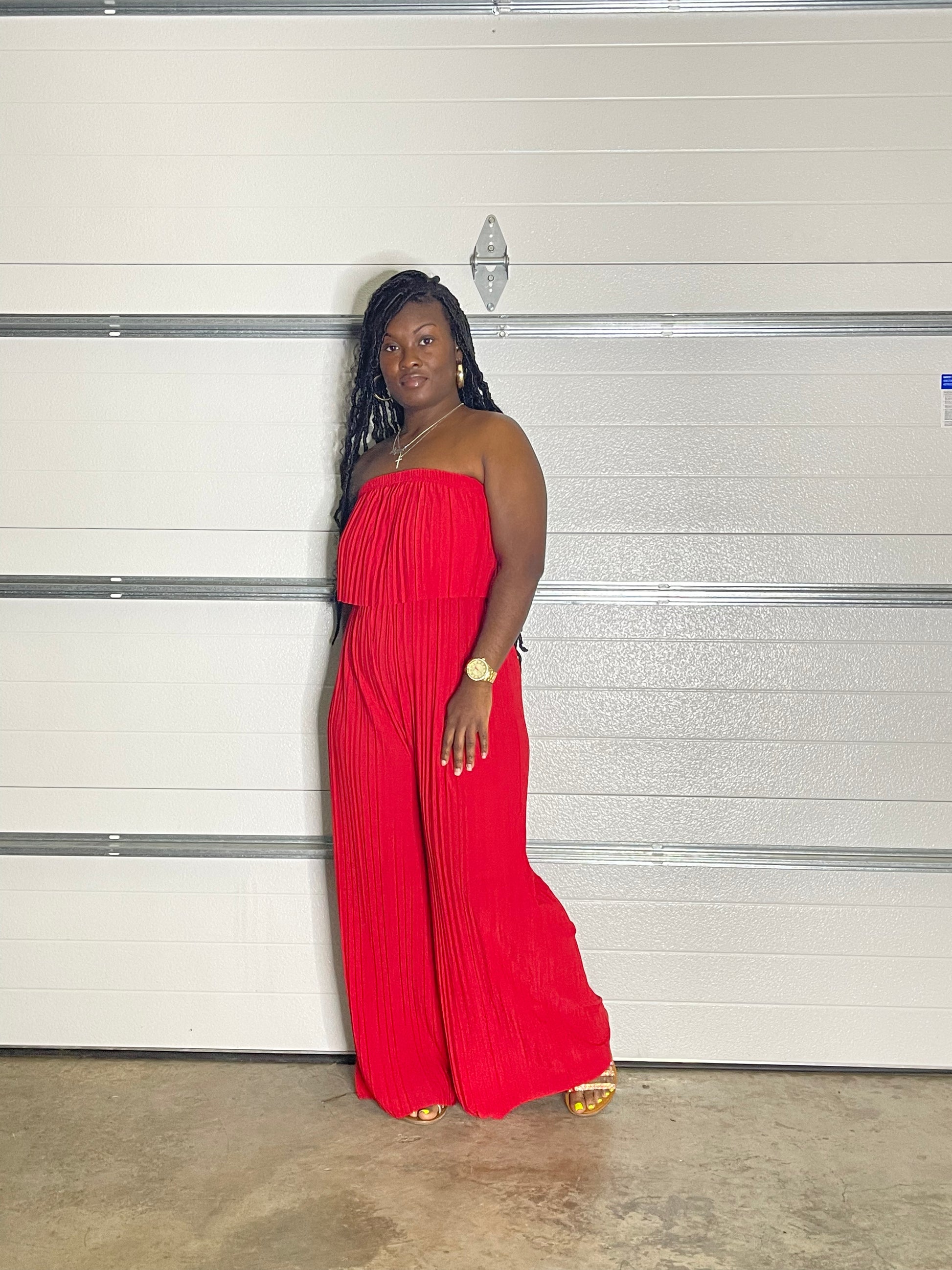 Pleated sleeveless jumpsuit. Perfect for any occasion. Stretch is amazing. Oversized, flowy.