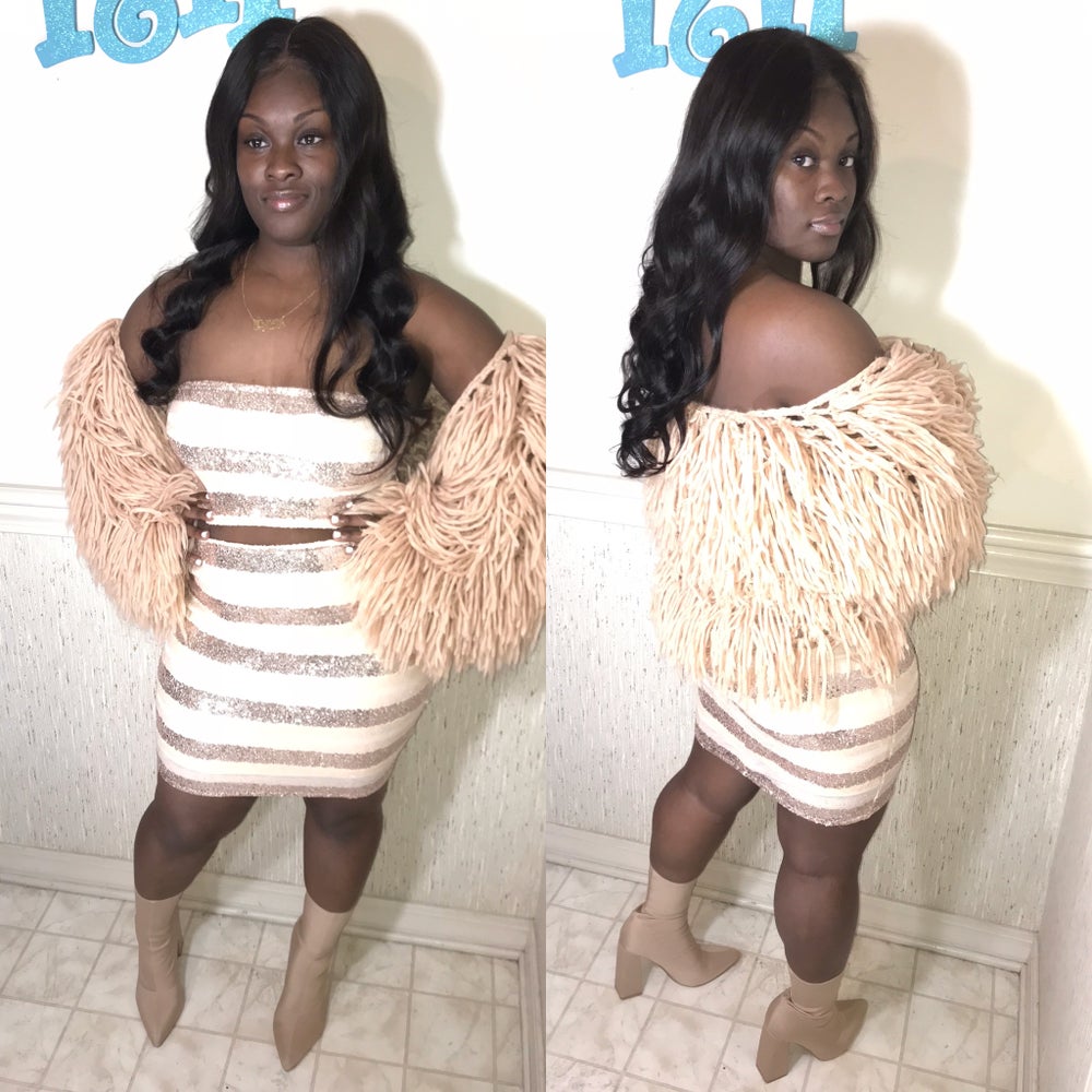 Matching two piece sequin set. Halter Top & Skirt. True to size.