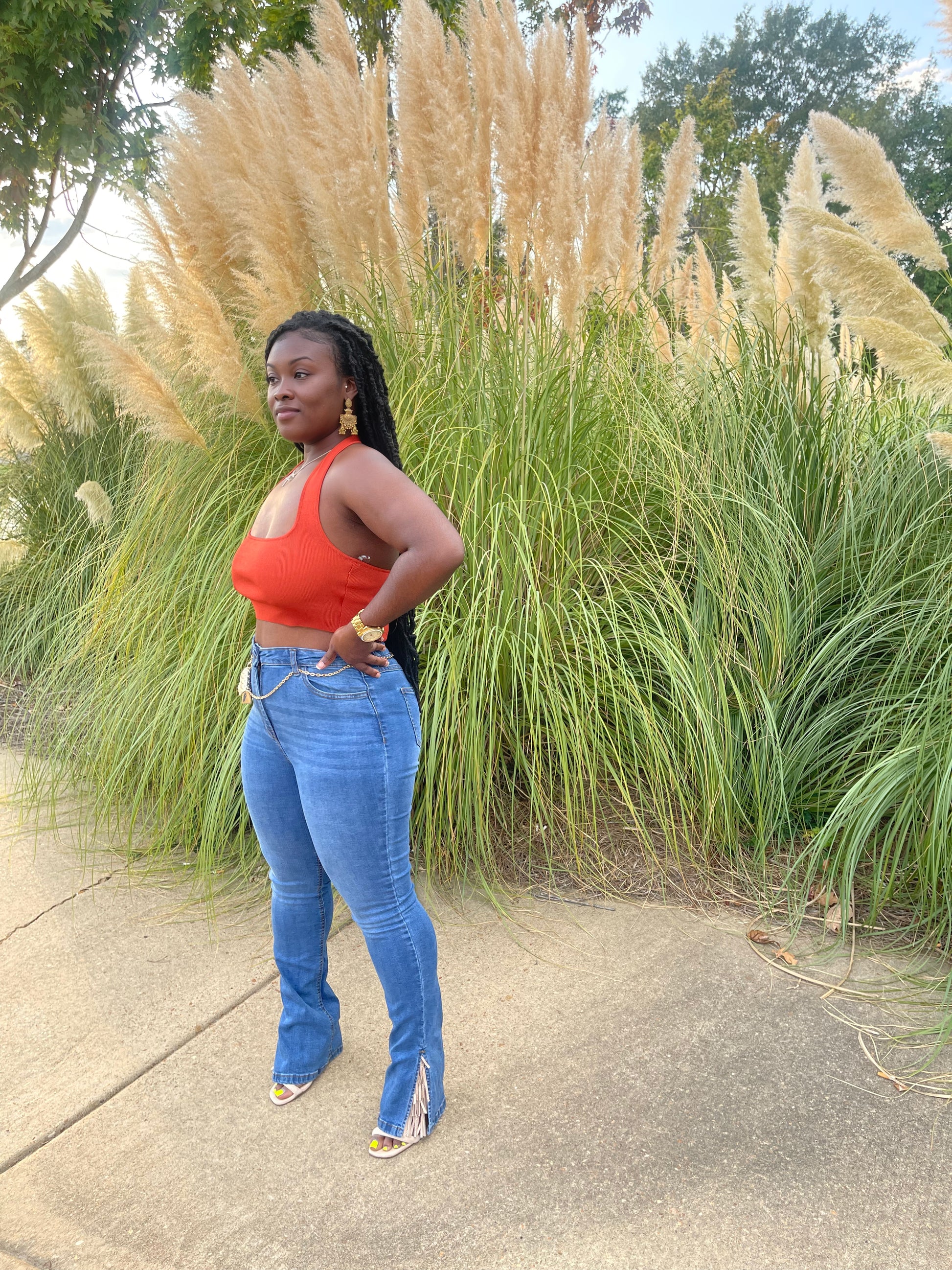 Halter knit top, pairs perfect with any bottoms! Has great stretch.