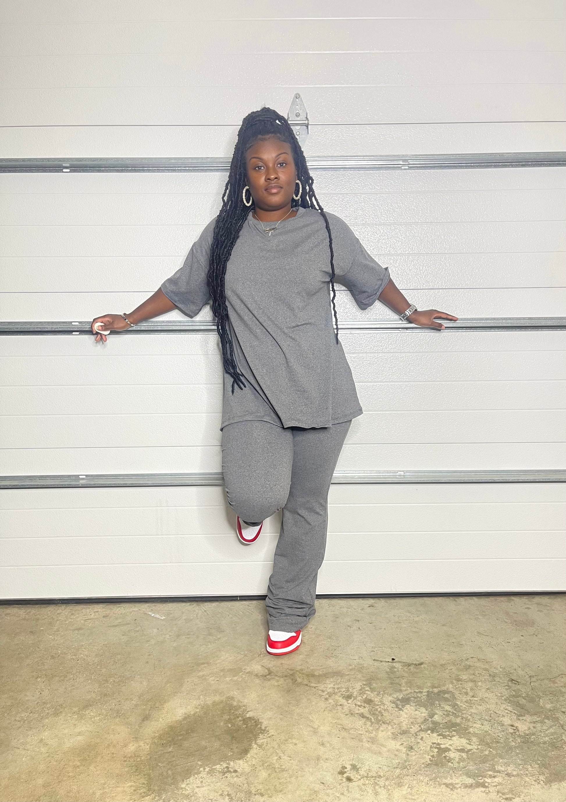 Two-piece set. Top: Long tee with quarter length sleeves. Bottoms: wide leg. Tall girl friendly. Great stretch.