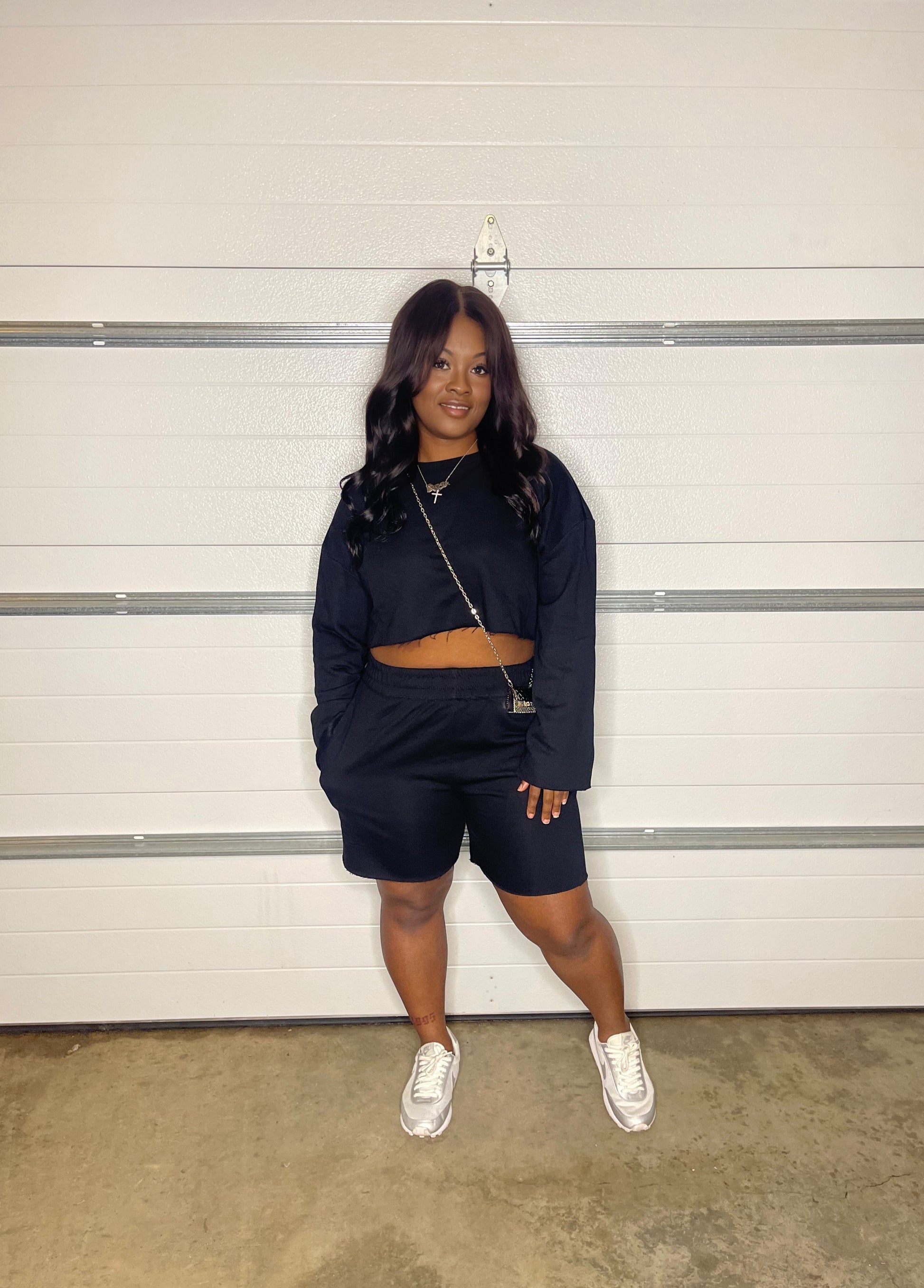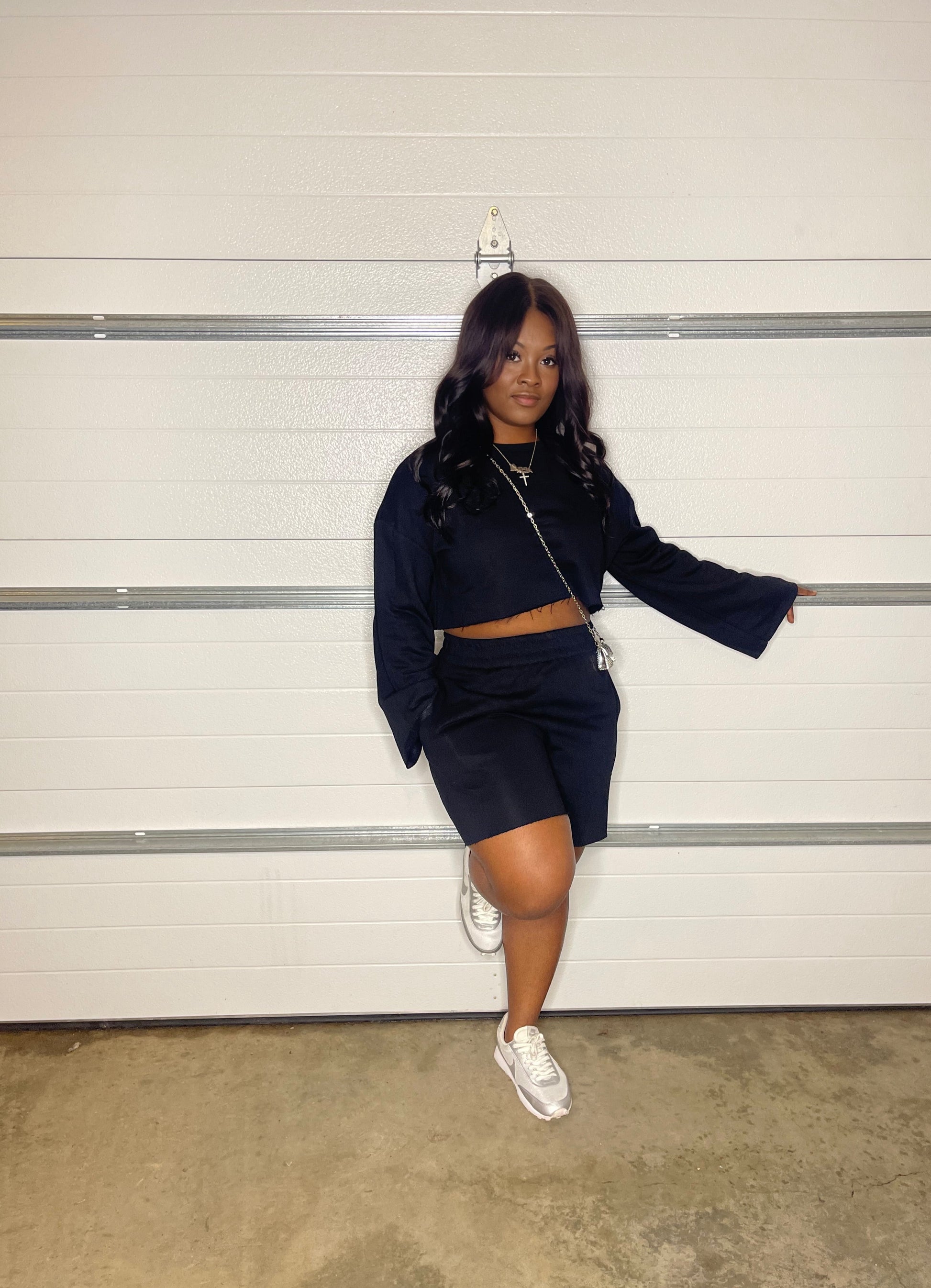 If you love to be comfortable and chill this is for you! Two-piece set. Oversized top crop with long flare sleeve. Mid- length bottoms. Another version search: "Chill Always"