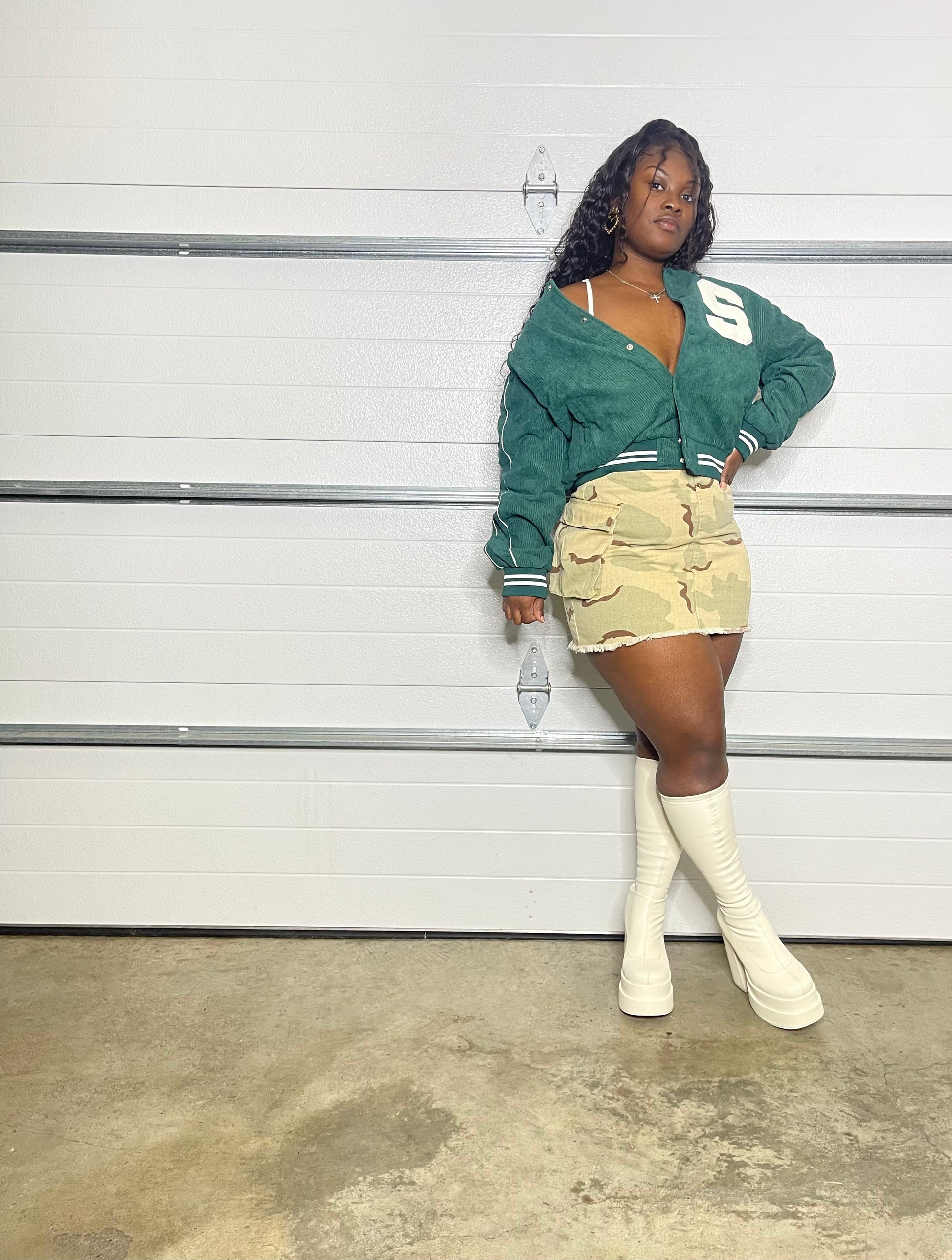Corduroy varsity jacket.